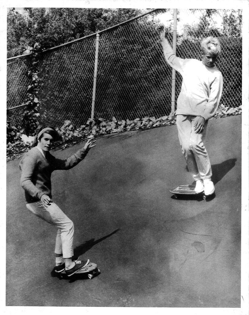 His son, George Jr., was younger than Ganzer and always hanging out of his bedroom window checking out the action at the Aaberg’s house. “One day we were nailing iron wheels onto 2x4s, making the first skateboards, then pretending that we were surfing on the sidewalk. George Jr. leaned out his window and asked, ‘Hey, what are you guys doing?’ The next thing you know, he’s down there skateboarding with us, and in what seemed like a few weeks, he was better than all of us,” said Ganzer.