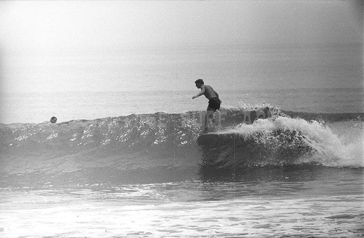 When it came to surfing The Point, nobody rode the nose better than Lance Carson. “He started surfing really young. His dad made him these miniature boards and used to take him up to The Point. Lance had more of an upright, bob-and-weave style and did amazing tail block stalls. This was very different from Miki Dora and a lot of the Malibu guys who had more of a smooth, narrow-stanced, trimming style.